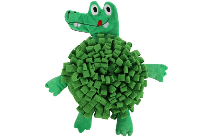 Convierte la hora del snack en un juego divertido con la Alfombra de Olfateo Cocodrilo. Diseñada para esconder comida seca o premios entre sus pliegues, esta alfombra estimula el instinto natural de búsqueda de tu perro, ayudando a reducir el estrés, evitar el engullimiento rápido y mantenerlo mentalmente activo.
