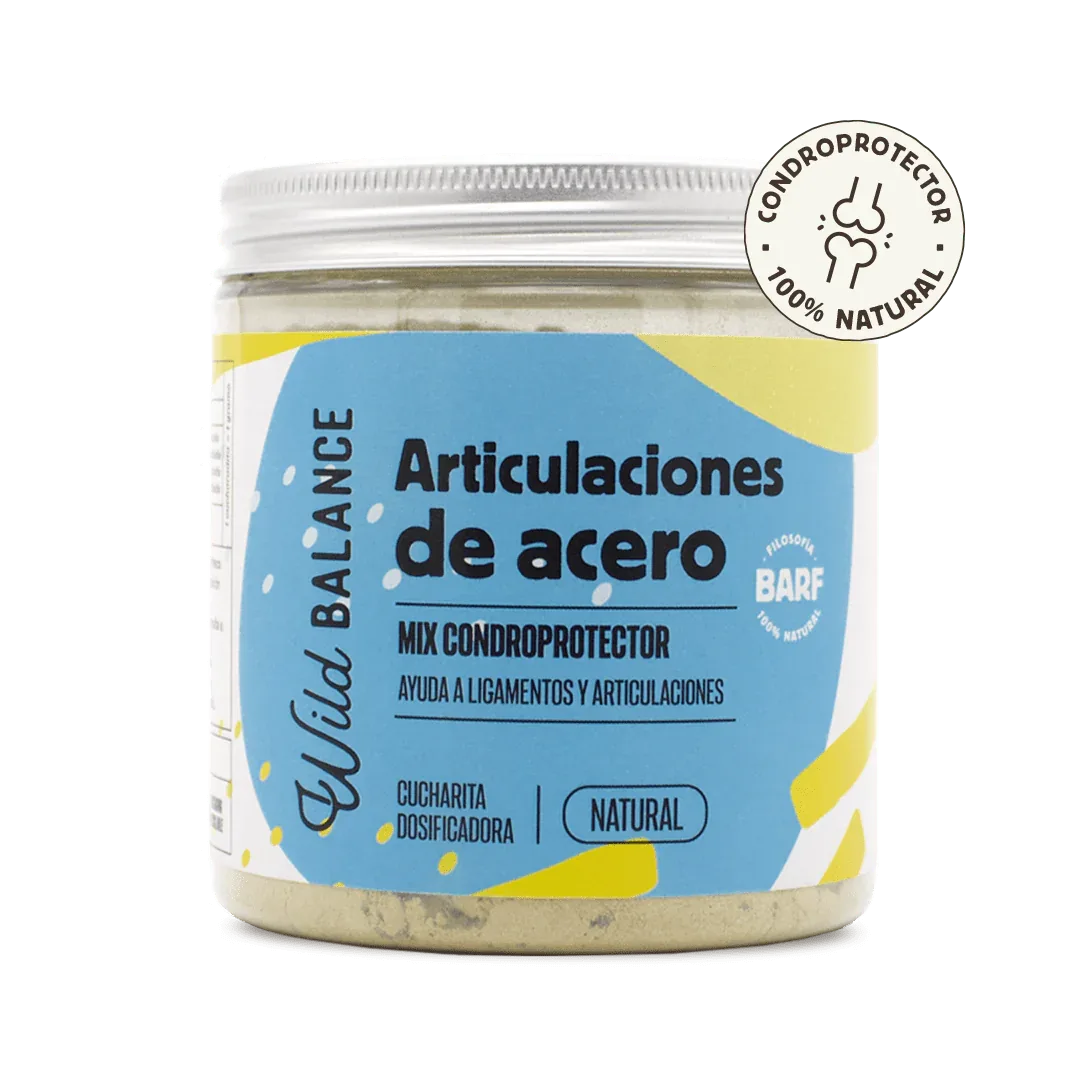 Articulaciones de Acero es un suplemento 100% natural diseñado para proteger y reforzar las articulaciones, ligamentos y tendones de perros y gatos. Ideal tanto para uso preventivo como para aliviar problemas articulares existentes, como artrosis, artritis o displasia.