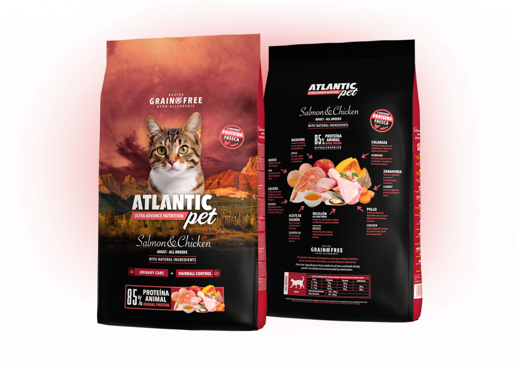 Con ATLANTICPET Ultra Premium Grain Free Chicken Adult, tu gato adulto disfrutará de una alimentación natural, nutritiva y libre de cereales, que respalda su vitalidad y bienestar en cada etapa de su vida. ¡Haz tu pedido y nota la diferencia!