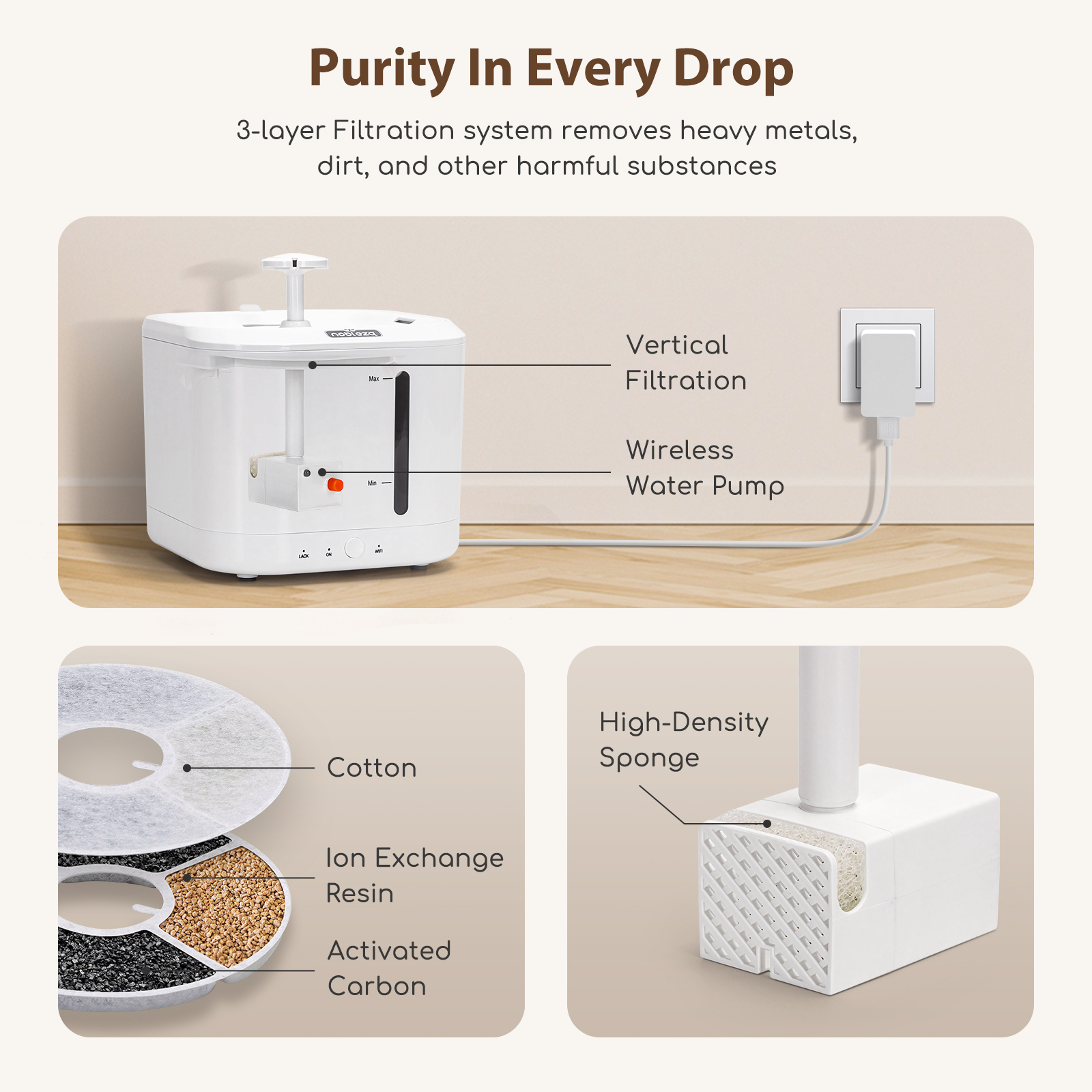 • 🔄 Agua circulante y purificada: estimula el deseo natural de beber